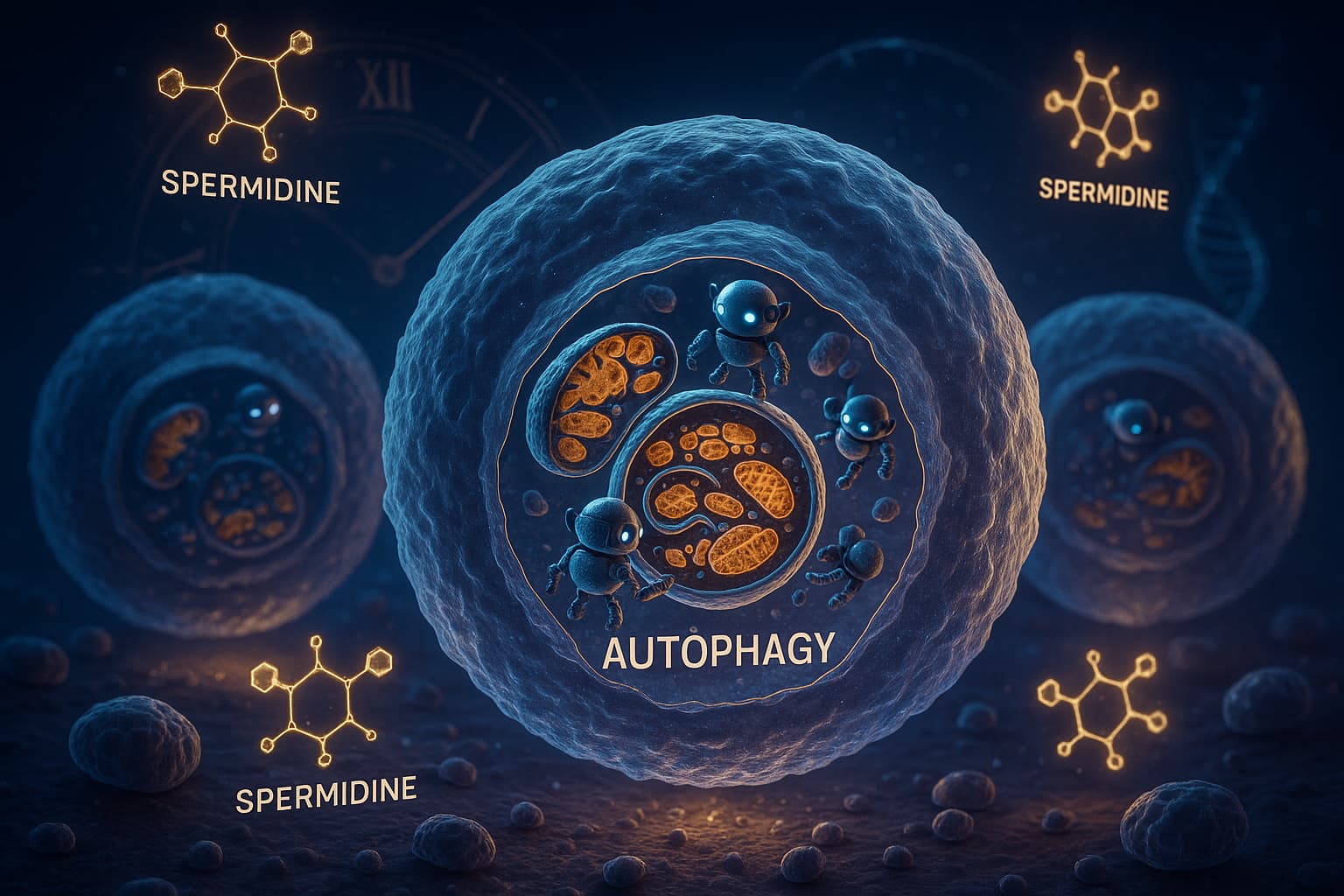 I first dismissed it as just another supplement trend. But once I looked at the studies from yeast and mice all the way to human trials, it became clear this is more than hype. Spermidine appears to help restore one of the most important cellular processes for long-term health: autophagy, the built-in cleanup system that recycles damaged proteins and organelles before they cause trouble, a process deeply connected to several of the hallmarks of aging..